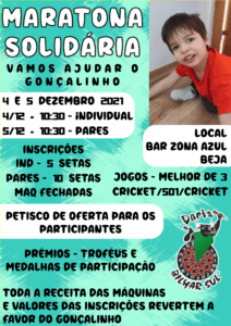Maratona Solidária – Vamos ajudar o Gonçalinho Dias 4 e 5 de Dezembro 2021 no Bar Zona Azul em Beja.
