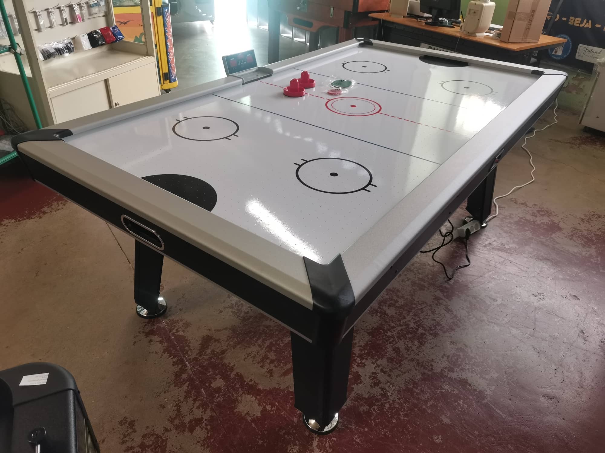 Um jogo de air hockey  é muito divertido, agradável, ativo e móvel e, enquanto isso, você também desenvolve seu tempo de reação e coordenação olho-mão (e muito bem). E tudo isso na sua própria casa. Isso também torna o air hockey um presente ideal e responsável para seus filhos ou netos. Air hockey ocupa relativamente pouco espaço para um jogo de atividade. Esta grande mesa de 7 pés é muito adequada para adolescentes e adultos e também grande o suficiente para jogos em equipe (2 contra 2)!