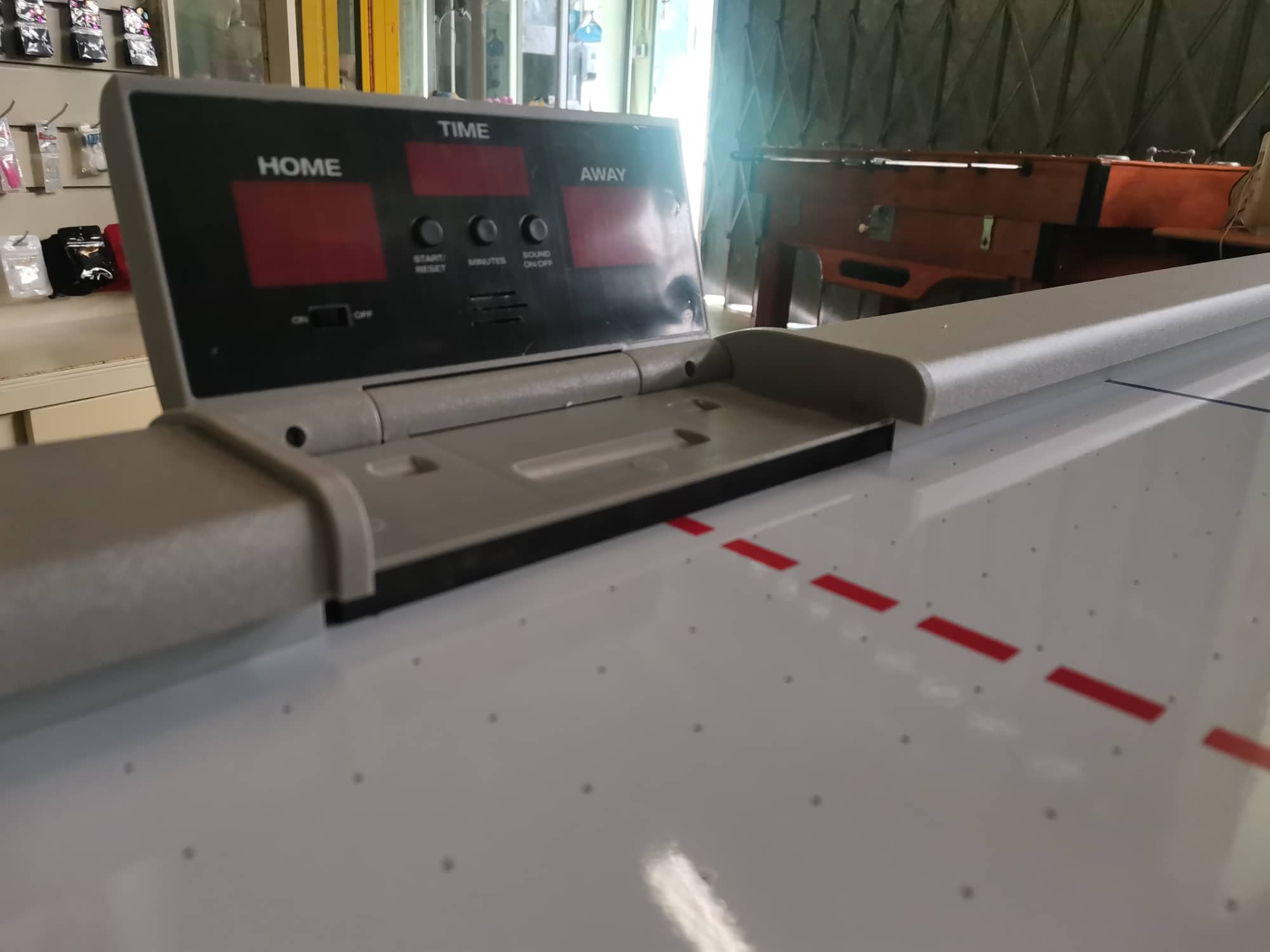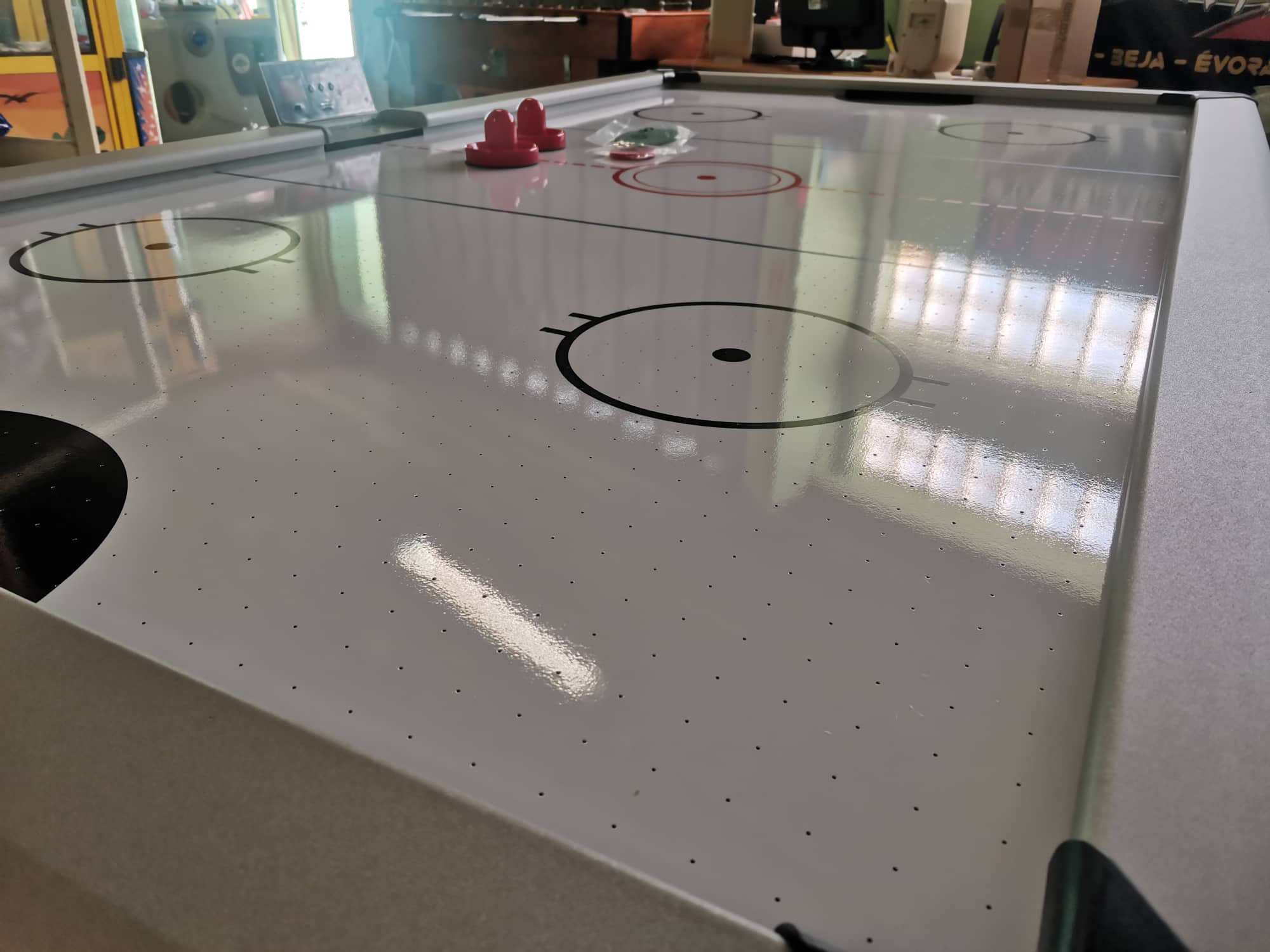 Graças ao motor potente e ao campo de jogo, o disco voa sobre a mesa, o que realmente faz justiça à experiência do air hockey.